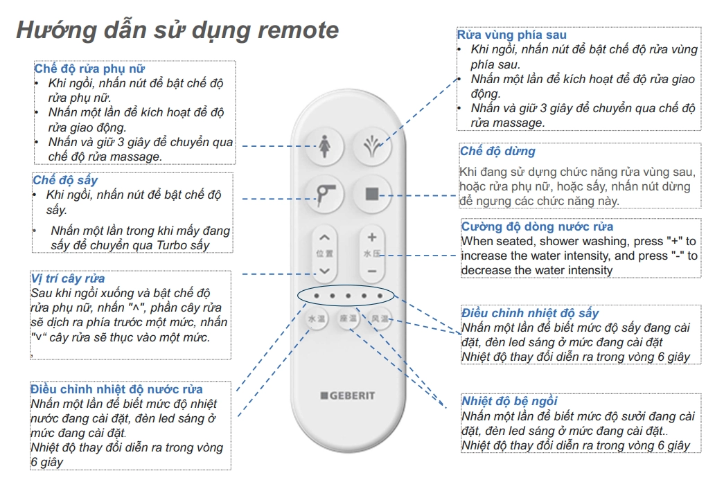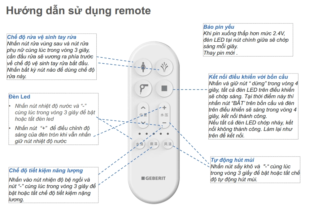 - Điều khiển từ xa tiện dụng: Dễ dàng điều chỉnh các chế độ rửa và sưởi qua remote.