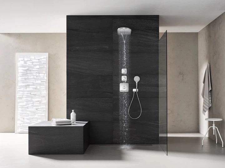 Thiết kế phẳng, kéo dài theo phương ngang tạo hiệu ứng kiến trúc mạnh mẽ, phù hợp không gian shower walk-in, phòng tắm master, villa hoặc khách sạn cao cấp.