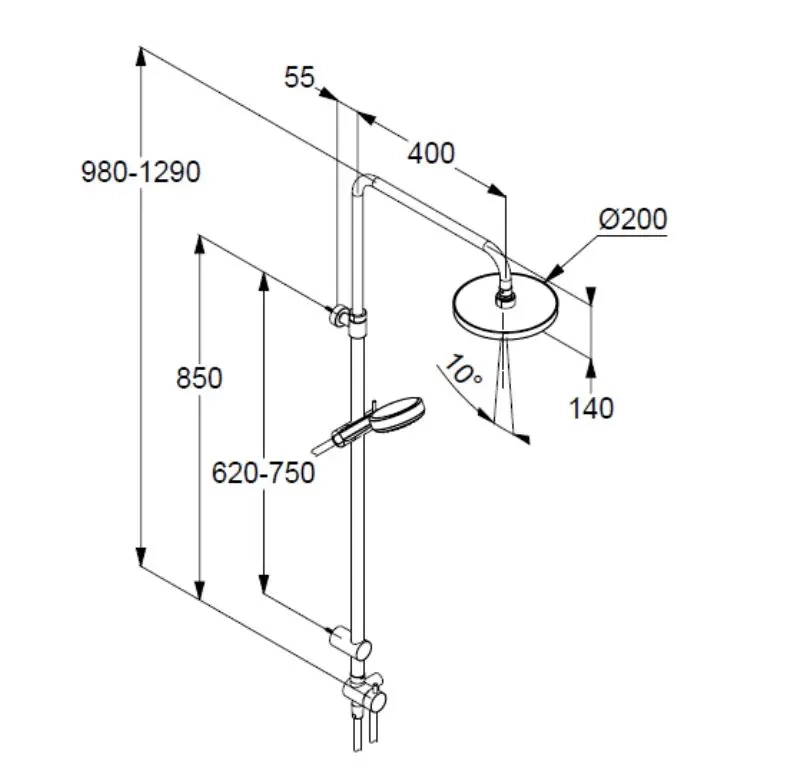 Một trong những ưu điểm nổi bật của bộ sen tắm KLUDI DIVE S 3 chế độ 6808005-00 là thiết kế sen tắm đôi (dual shower system). Hệ thống này bao gồm hai thành phần chính: sen đầu gắn phía trên và sen tay cầm linh hoạt.