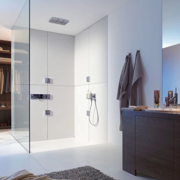 Trong xu hướng nội thất hiện đại, việc tích hợp nhiều công năng vào một điểm điều khiển là chìa khóa tạo nên sự sang trọng. Vòi sen AXOR 120/120 lắp đặt âm tường thực hiện điều này một cách xuất sắc bằng việc kết hợp tất cả các yếu tố cần thiết vào một mô-đun duy nhất.