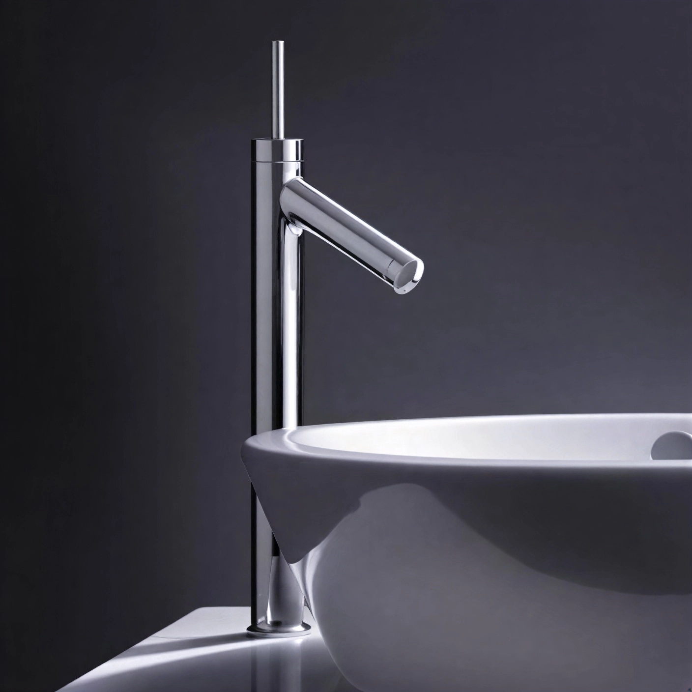 Với chiều cao đầu vòi khoảng 250 mm, sản phẩm mang lại không gian thao tác rộng rãi hơn đáng kể so với các vòi lavabo tiêu chuẩn. Điều này đặc biệt quan trọng khi sử dụng với chậu rửa đặt bàn (vessel sink) – loại chậu đang rất phổ biến trong thiết kế phòng tắm hiện đại.