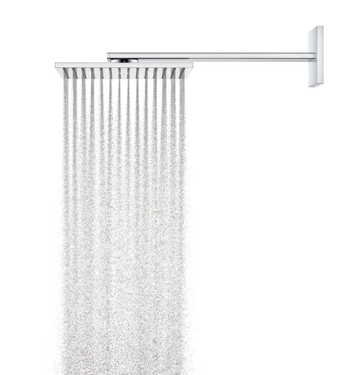 Với kích thước mặt sen lên đến 300 x 300 mm, AXOR ShowerSolutions mang đến một diện tích bao phủ nước cực lớn, ôm trọn cơ thể người dùng trong một làn sương nước đầy đặn. Thiết kế vuông vức với các cạnh được mài giũa sắc sảo nhưng vẫn giữ được sự tinh tế vốn có của AXOR, tạo nên sự đồng bộ tuyệt đối với các thiết bị lắp âm khác như ổ cắm tường Fine hay thermostat ShowerSelect ID mà bạn đã chọn.