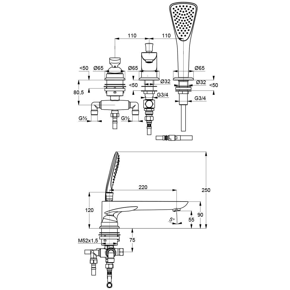 | Hình thức lắp đặt : | Lắp mép bồn tắm | |