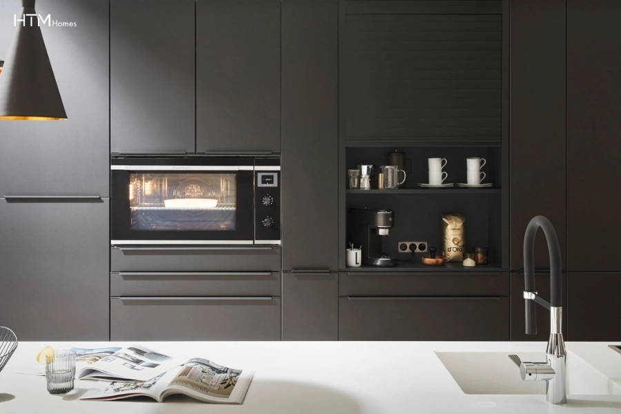 pCách bố trí phòng bếp đẹ ngày nay không chỉ là sắp xếp cho gọn gàng, mà còn góp phần định hình trải nghiệm sống của gia chủ. Một căn bếp được bố trí khoa học giúp tối ưu thao tác, tạo sự liền mạch cho không gian sinh hoạt. Trong quá trình hoàn thiện những căn bếp này, HTM Homes sẽ giúp gia chủ tiếp cận và lựa chọn các giải pháp thiết bị gia dụng cao cấp theo chuẩn sống hiện đại.