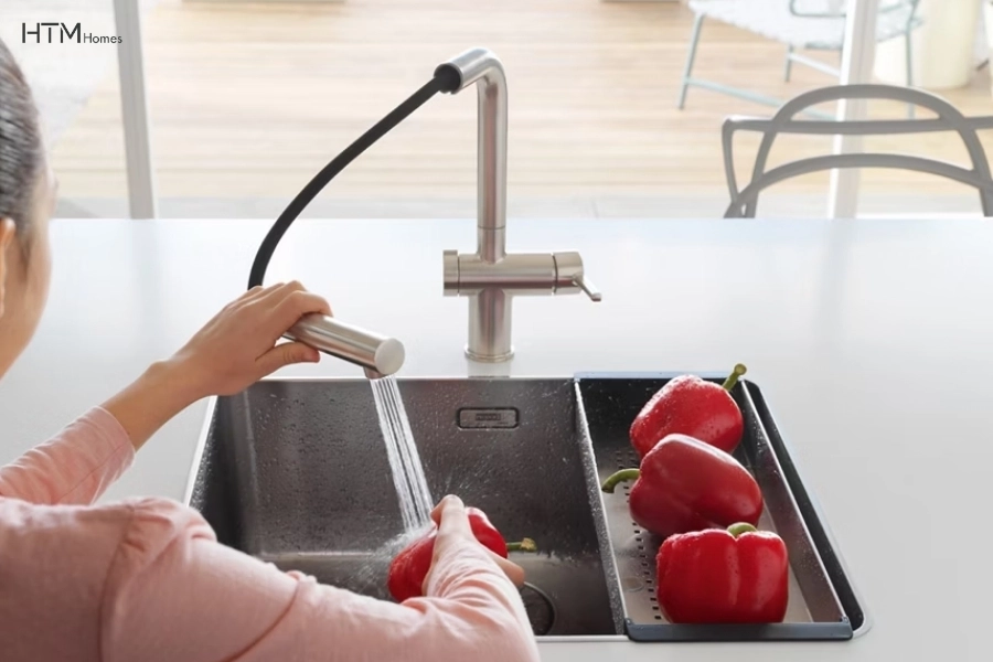 Để tối ưu trọn vẹn trải nghiệm sử dụng, vòi rửa thường được kết hợp đồng bộ với chậu rửa có thiết kế và kích thước phù hợp. Bạn có thể tham khảo thêm các mẫu bồn rửa chén Franke để dễ dàng lựa chọn giải pháp đồng bộ cho khu vực bếp.